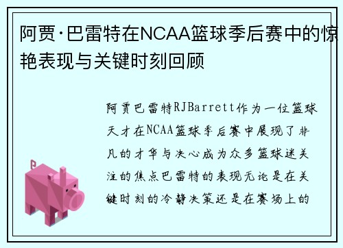 阿贾·巴雷特在NCAA篮球季后赛中的惊艳表现与关键时刻回顾